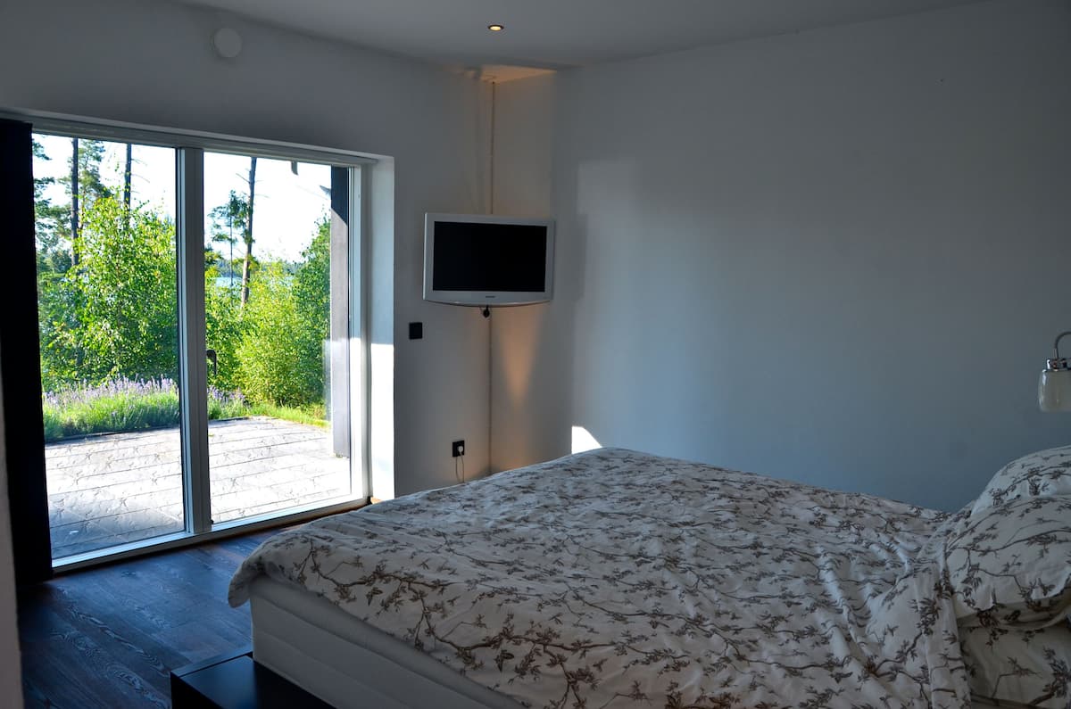 Lyxigt sommarhus på Bolmsö, 50 meter från sjön med privat strand och privat brygga. Fiskebåt ingår, liksom kanot, SUP och cyklar. Utomhus jacuzzi för 8 personer tillgänglig dygnet runt. Buddha lounge och grillområde med lavendelfält. Huset har 4 sovrum och 3 badrum med plats för upp till 8 gäster. Om du har båtupplevelse kan du hyra vattensportbåtar för wakeboarding och vattenskidåkning. Alla sängkläder, handdukar och slutstädning ingår. 10 km till restaurang och liten butik, 30 km till stan med butiker.